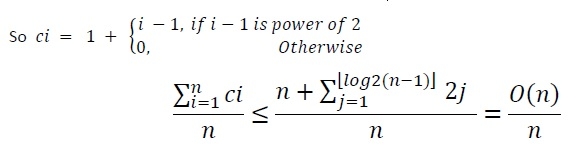 對於動態陣列,令 𝑐𝑖 = 第 𝑖 次插入的代價。