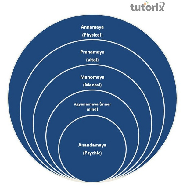 《奧義書》進一步將心靈劃分為五個層次或鞘,它們是自我和性格的基礎。這些 panchkoshas 是: