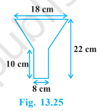 一個由錫片製成的油漏斗由一個長 10 釐米的圓柱形部分和一個圓錐臺組成。如果總高度為 22 釐米,圓柱形部分的直徑為 8 釐米,漏斗頂部的直徑為 18 釐米,求製作該漏斗所需的錫片的面積。