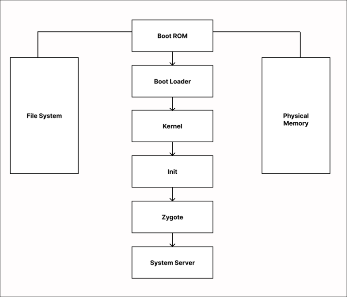 Android啟動流程是啟動計算機以供使用的過程。可以透過開啟電源來啟動計算機系統。啟動計算機時,它只能讀取稱為只讀儲存器的一部分儲存空間。啟動計算機時會啟動一個小型程式,該程式儲存並稱為韌體。它允許訪問其他型別的記憶體,例如主記憶體和硬碟。韌體用於載入大型程式並將其執行到計算機的主記憶體中。無論是在移動裝置、計算機系統還是其他裝置上,所有裝置都會執行啟動管理器。