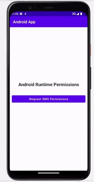 我們將建立一個簡單的應用程式,其中包含一個用於顯示應用程式標題的TextView和一個用於請求許可權的按鈕。此應用程式將請求讀取Android裝置中簡訊的許可權。