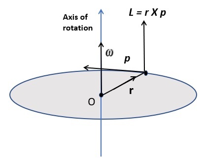 $$\mathrm{\overrightarrow{L} =\overrightarrow{r}\:\times\: \overrightarrow{P}}$$