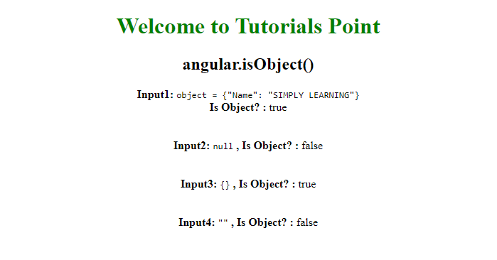 在你的Angular專案目錄中建立一個檔案“isObject.html”,並複製貼上以下程式碼片段。