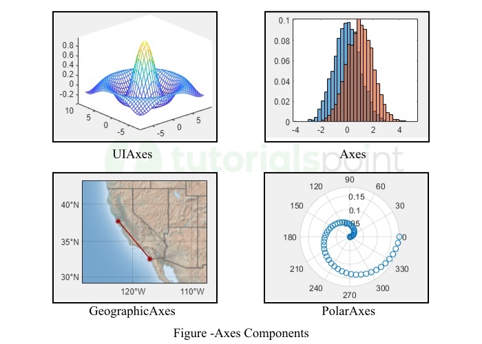 因此,所有這些都是MATLAB應用程式構建器中的常用元件。現在,讓我們瞭解MATLAB應用程式構建器中的座標軸。