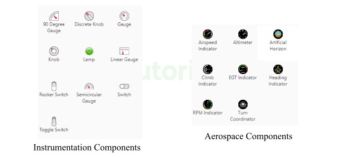 MATLAB應用程式構建器還具有用於航空航天工程的元件。這些元件包括空速指示器、高度表、人工地平線、爬升指示器、排氣溫度指示器、加熱指示器、轉速指示器和轉彎協調器。