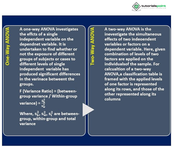 實驗旨在研究一個或多個自變數對一個或多個因變數的影響。ANOVA 用於確定樣本暴露於自變數是否顯著增加了因變數的方差,超過了可歸因於隨機原因的變異。主要目標是計算三個或多個分陣列的均值由於抽樣誤差而不同的可能性。