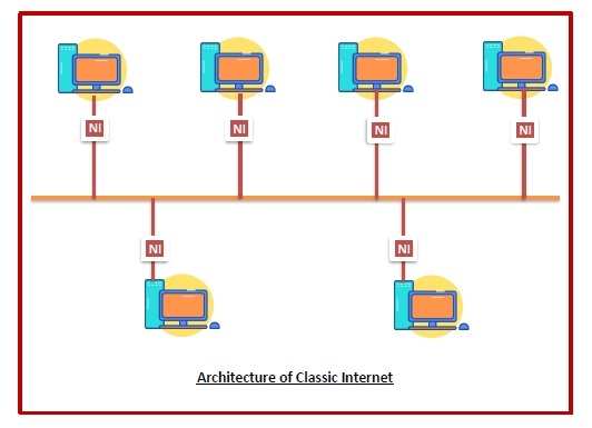 經典乙太網是乙太網最簡單的形式。它包含由一段長的同軸電纜組成的乙太網介質。可以使用稱為網路介面卡 (NI) 的卡將工作站連線到同軸電纜。NI 負責透過網路接收和傳輸資料。中繼器用於在電纜段之間進行端到端連線,以及在訊號變弱時重新生成訊號。當工作站準備傳輸時,它將幀放入電纜中。這種安排稱為廣播匯流排。