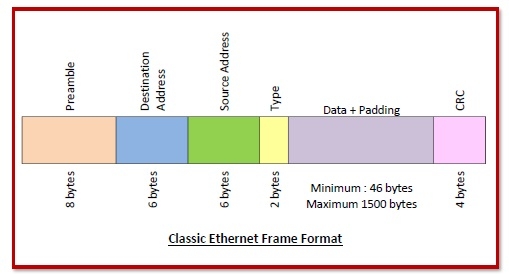 - 填充:這新增到資料中,以使其長度達到 46 位元組的最小要求。