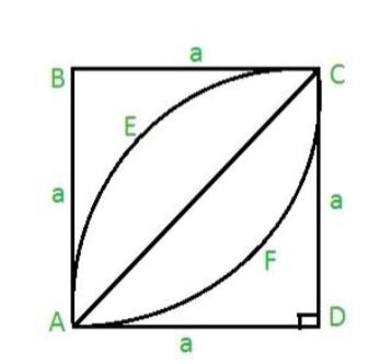 要找出第1部分AECA的面積,我們將找出四分之一圓AECDA的面積,然後減去三角形ACDA的面積。