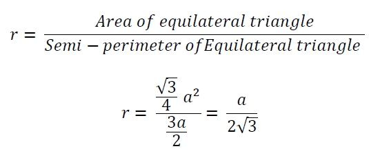 在這裡,我們將看到內接於等邊三角形的圓的面積。三角形的邊長為“a”。