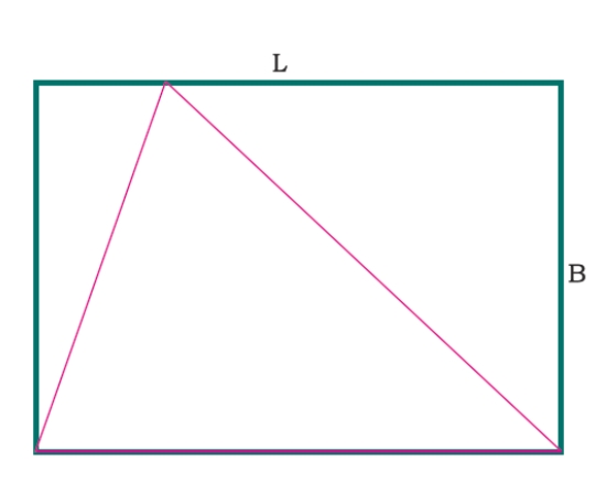 假設給定一個矩形。我們知道它的長度 L 和寬度 B。我們需要找到能內接於該矩形的面積最大的三角形 −