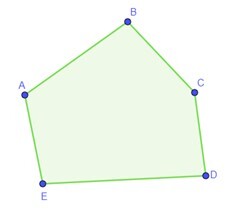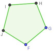 在幾何學中,五邊形是任何五邊形或五角形(源於希臘語 pente,意為五,gonia,意為角)。在一個簡單的五邊形中,內角之和為 540°。五邊形可以是簡單的,也可以是自相交的。五角星是一個自相交的正五邊形(有時稱為星形五邊形)。在下圖中,ABCDE 是一個不規則五邊形,FGHIJ 是一個正五邊形。