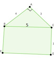 注意,在五邊形 ABCDE 中,三角形 ABC 是一個直角三角形,四邊形 BEDC 是一個矩形。