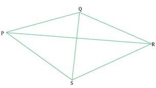 例如,以下四邊形應稱為PQRS、QRSP、PSRQ或RSPQ。由於它們改變了生成四邊形的頂點順序,因此不能稱為PRSQ或SQPR。一個標有PQRS的四邊形有四條邊:PQ、QR、RS和PS,以及兩條對角線:PR和QS。
