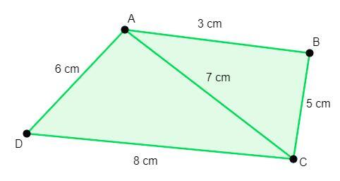 以下四邊形是一個一般四邊形。它的面積可以透過將由於任何一條對角線而被分成兩個三角形的面積相加來求得。