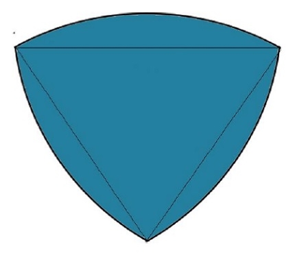 這裡我們將演示如何計算下方的羅洛三角形面積。羅洛三角形內部有一個等邊三角形。假設其高度為 h,此形狀由三個圓的交點構成。