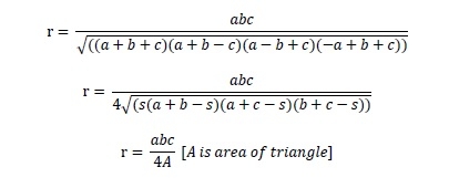 本文將介紹如何求出給定邊長的任意三角形外接圓面積。其中邊 AB 為 a,BC 為 b,CA 為 c,半徑為“r”。
