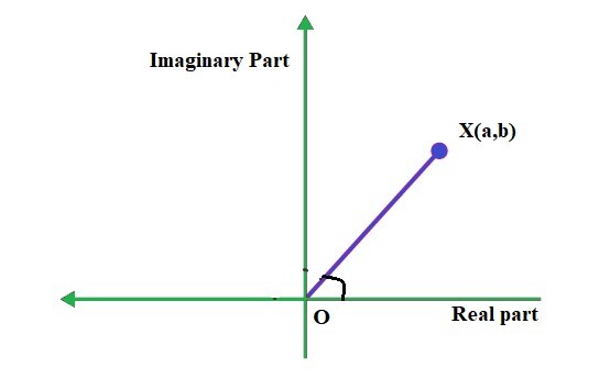 上圖顯示了在阿根圖平面上表示的具有座標 (a,b) 的複數“z”。角度 α 是該直線與正 x 軸所成的角。