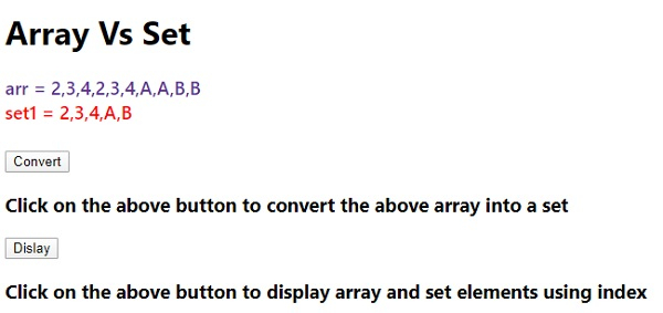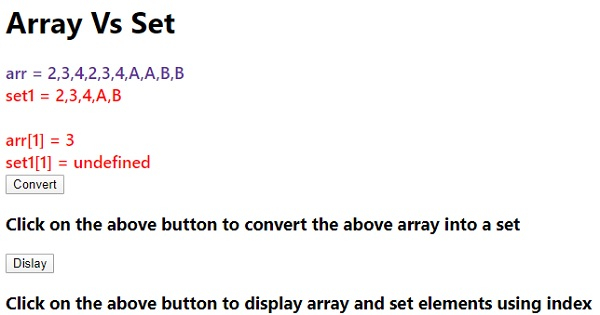以下是顯示 JavaScript 中陣列與 Set 之間區別的程式碼 −