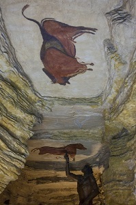 在一些洞穴壁畫中,許多動物都被單獨或成群地描繪,大小各異。最常見的動物包括“野牛、野牛、長毛猛獁象、馴鹿和野馬”。魚、鳥和人的雕塑和繪畫非常罕見。舊石器時代晚期的一個這樣的遺蹟存在於“法國的豐德戈姆”。該洞穴遺址描繪了一系列“猛獁象、野牛、馴鹿、長毛犀牛和馬” 的繪畫雕塑,這些雕塑是用黑色、紅色和棕色等醒目的顏色進行多色描繪的。