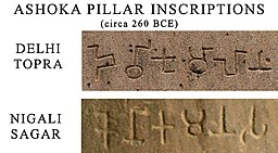 阿育王的詔書散佈在他的帝國各地,即現在的尼泊爾、印度、巴基斯坦和阿富汗。阿育王的一篇著名的石刻是第十三號大石刻,據信是在與卡林迦戰爭之後不久寫成的,它詳細記述了卡林迦戰爭及其對阿育王的影響。在這篇詔書中,阿育王被稱為“Devanam piyadassi”,意為“神所愛”,並提到卡林迦是在國王皮亞達西加冕八年後被征服的。