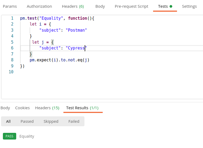 在 Postman 中,我們有使用 Chai 斷言庫進行斷言。斷言用於檢查預期結果和實際結果是否相同。如果不是,則會丟擲一個帶有錯誤訊息的斷言錯誤。