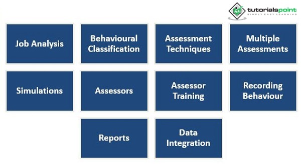 多重評估 - 必須應用各種評估方法。例如,測試、面試、調查、社會測量工具和模擬。評估方法的設計或選擇是為了引出與規定的能力/維度相關的廣泛的行為和資訊。作為評估資訊,可以獲取自我評估和 360 度評估資料。評估方法將進行預測試,以驗證它們是否能產生準確、客觀和相關的行為資料。