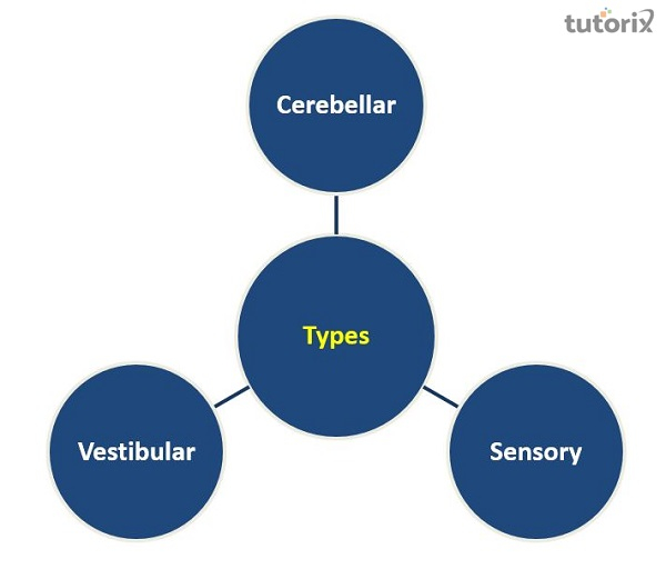 由於缺乏本體感覺或無法感知關節和其他身體部位在空間中的位置而引起的共濟失調稱為感覺性共濟失調。脊髓背側部分(將本體感覺資訊傳遞到大腦)經常出現功能障礙,從而導致這種情況。一些感覺性共濟失調可能是由於處理位置資料的大腦區域出現問題造成的。這些區域包括小腦、丘腦和頂葉。由於本體感覺資訊丟失,感覺性共濟失調患者通常以不穩定的“跺腳”步態行走,其特徵是腳跟撞擊較重,平衡問題在光線昏暗的環境中常常加劇。