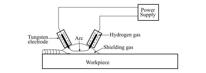 分子氫被吹過電弧,並透過催化作用轉化為原子氫,原子氫作為載體將電弧的能量傳遞到工件。