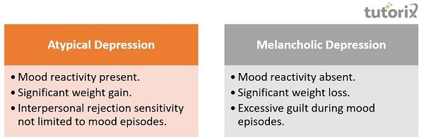 非典型抑鬱症與重度抑鬱症的不同之處在於,患有 A.D. 的人在發生快樂的生活事件時會獲得暫時的緩解。然而,患有重度抑鬱症的人幾乎總是感到沮喪。