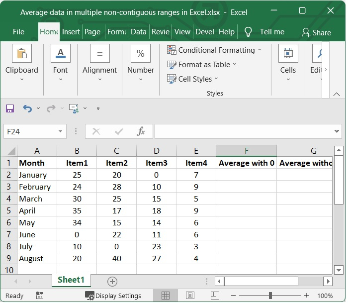讓我們從計算包含零的不連續單元格中數字的平均值的逐步過程開始。
