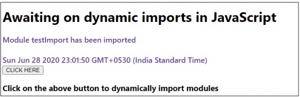 以下是在 JavaScript 中進行動態匯入的程式碼 -