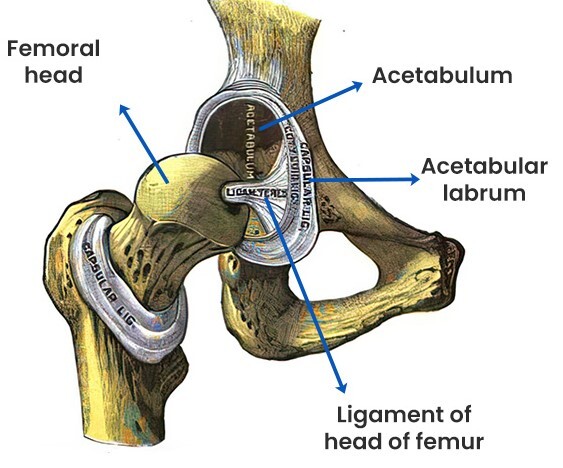 在髖關節中,股骨(大腿骨)的圓形或橢圓形頭部(球)與髖臼(窩)的凹腔相融合。強壯的髖部肌肉和堅韌的韌帶保護髖關節。這種連線對於將股骨固定到位並防止身體拉傷至關重要。與肩關節的窩相比,髖骨的窩相當深,使其相對穩定,同時也能控制最佳運動。窩的空腔也透過控制關節的運動來保護髖部免於脫位。與肩關節相比,髖關節較大,因為它承受著整個身體的重量。然而,與肩關節相比,它的活動性較小。