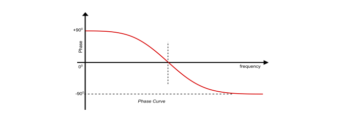 在相位曲線中,從頻率值為 0 到諧振頻率 (fr),輸出訊號比輸入訊號超前 90°。在諧振頻率下,相位角變為零,然後隨著頻率增加而變為比輸入訊號滯後 90°。