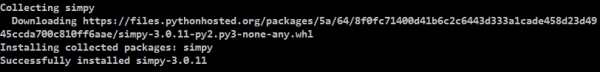 要檢查SimPy是否成功安裝,請開啟python shell並匯入simpy。