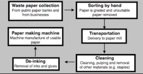 - 將從紙張中獲得的紙漿與膠水和木屑混合。膠水和木屑使紙張變硬。