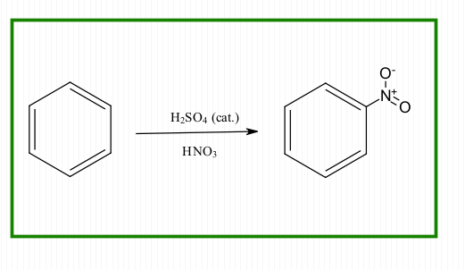 在硫酸存在下,硝酸和苯在 323K 至 333K 的溫度下反應生成硝基苯。