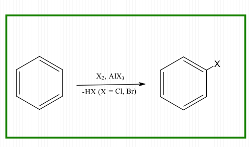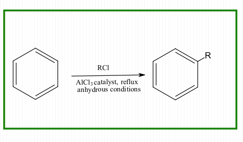 在弗裡德爾-克拉夫茨烷基化反應中,苯與滷代烷反應生成烷基苯,當存在任何路易斯酸時。