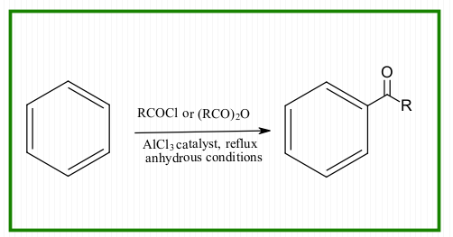 弗裡德爾-克拉夫茨醯化反應發生在醯滷與苯反應生成醯基苯時,當存在任何路易斯酸時。