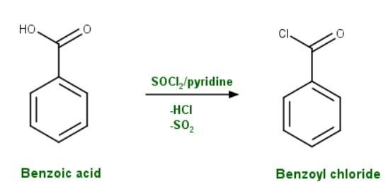 Q3. 如何由苯甲酸($\mathrm{(C_{6}H_{5}COOH)}$)製備苯甲醯氯?
