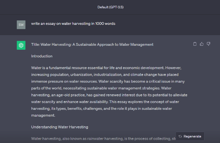 只需在 ChatGPT 機器人的搜尋欄中鍵入“以 1000 字撰寫一篇關於“標題”的論文”,即可讓它為您建立一篇使用指定標題的論文。您的論文將以給定的字數和格式製作。