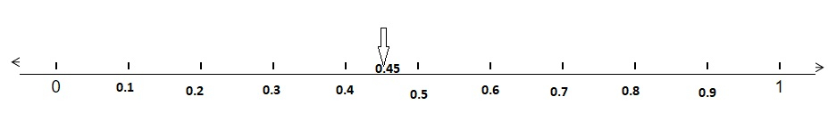 0.45 在數軸上位於 0.4 和 0.5 的十分位數之間。