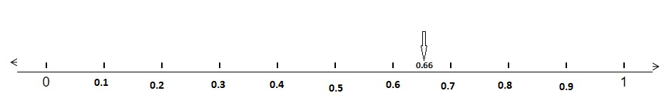 0.66 在數軸上位於 0.6 和 0.7 的十分位數之間。