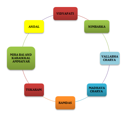 女性詩歌聖徒或信徒在巴克提運動中發揮了至關重要的作用。這一運動是一個高度男性主導的運動,這也是為什麼女性必須更加努力才能獲得認可的主要原因。當時的女性除了履行所有家務外,還參與了這一運動。下面列出了這一運動中一些著名的女性聖徒。