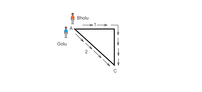 路徑2比路徑1長。但高盧和博盧同時到達C點。所以,博盧以更高的速度行駛了更長的距離。