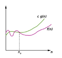 如果存在正常數n0和c,使得在n0的右側,f(n)總是位於c*g(n)之上或之下,則我們寫f(n) = O(g(n))。