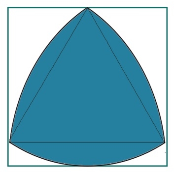 勒洛三角形的高度與 a 相同。因此 a = h。因此勒洛三角形面積為 -