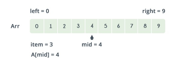 下界和上界的中間值是 (lower_bound + upper_bound) / 2 = 4。這裡 a[4] = 4。值 4 > 2,這就是您要搜尋的值。因此,我們不需要對超過4的任何元素進行搜尋,因為超過4的元素顯然大於2。