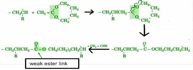 可水解的酯基與聚合物鏈反應,導致形成弱酯鍵,使其受到酶的攻擊。這種聚合物是可生物降解的聚合物。此外,它們的特性和分解機制由它們的精確結構決定。