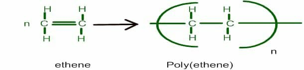 聚乙烯或聚乙烯是由乙烯或乙烯等單體的聚合產生的。它在有機過氧化物自由基作為引發劑的高溫和高壓下經歷自由基機制。它被稱為加聚反應。